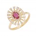 Anel em Ouro 18k Chuveiro Oval com 1 Rubi 6x4mm de 0.46Cts e 30 Diamantes de 0.45Cts