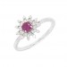 Anel em Ouro Branco 18k Chuveiro Flor com 1 Rubi 4mm de 0.35Cts e 22 Diamantes de 0.21Cts