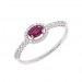 Anel em Ouro Branco 18k Chuveiro Oval com 1 Rubi 5x3mm de 0.31Cts e 30 Diamantes de 0.15Cts