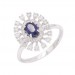Anel em Ouro Branco 18k Chuveiro Oval com 1 Safira 6x4mm de 0.60Cts e 30 Diamantes de 0.45Cts