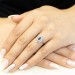 Informações das pedras | 1 Safira 6x4mm de 0.60Cts e 30 Diamantes de 0.45Cts |