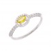 Anel em Ouro Branco 18k Chuveiro Oval com 1 Safira Amarela 5x3mm de 0.25Cts e 30 Diamantes de 0.15Cts
