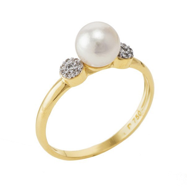 Anel Pérola com 2 círculos cravejados com Brilhantes.