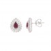 Brinco em Ouro 18k Branco Gota Com 2 Rubis 6x4mm 0.88cts Com 60 Diamantes 0.85cts