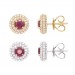 Brinco em Ouro 18k Chuveiro Redondo com 162 Diamantes 0.76Cts e 2 Rubis 4mm 0.63Cts