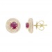 Brinco em Ouro 18k Chuveiro Redondo com 202 Diamantes 0.96Cts e 2 Rubis 5mm 1.12Cts