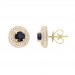 Brinco em Ouro 18k Chuveiro Redondo com 202 Diamantes 0.96Cts e 2 Safiras 5mm 1.12Cts