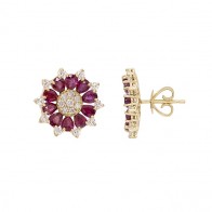 Brinco em Ouro 18k Flor Com 36 Diamantes 0.87cts Com 20 Rubis 4x3mm 4.40cts