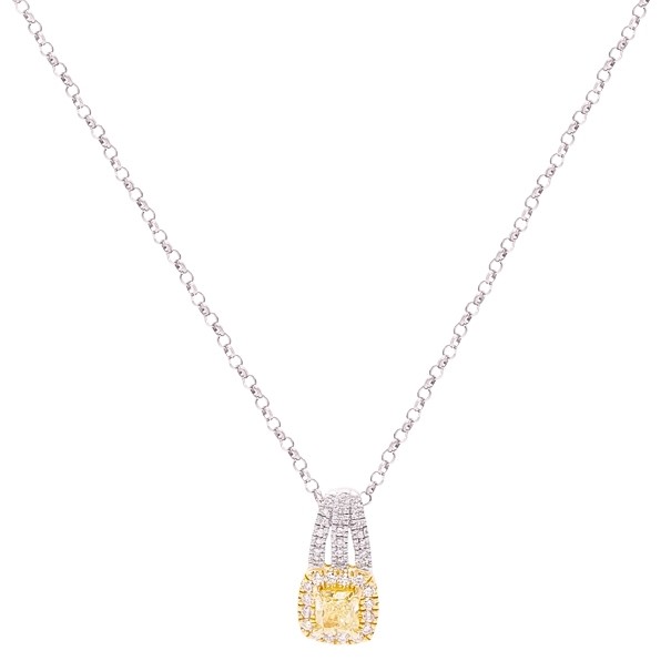 Gargantilha em Ouro Branco 18k Chuveiro com 1 Diamante Fancy Yellow 0.57cts e 33 Diamantes 0.26cts.